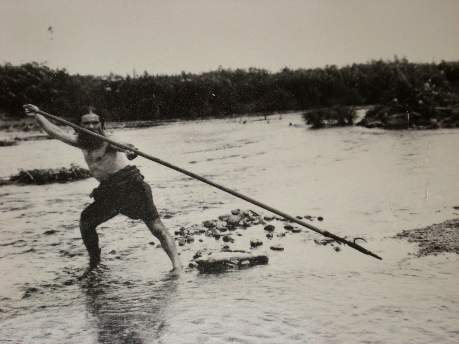 Ainu man fishing with spear