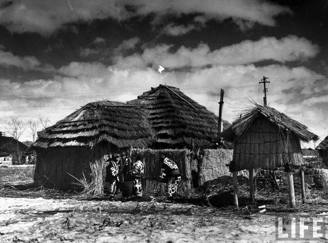 Ainu women pounding rice
