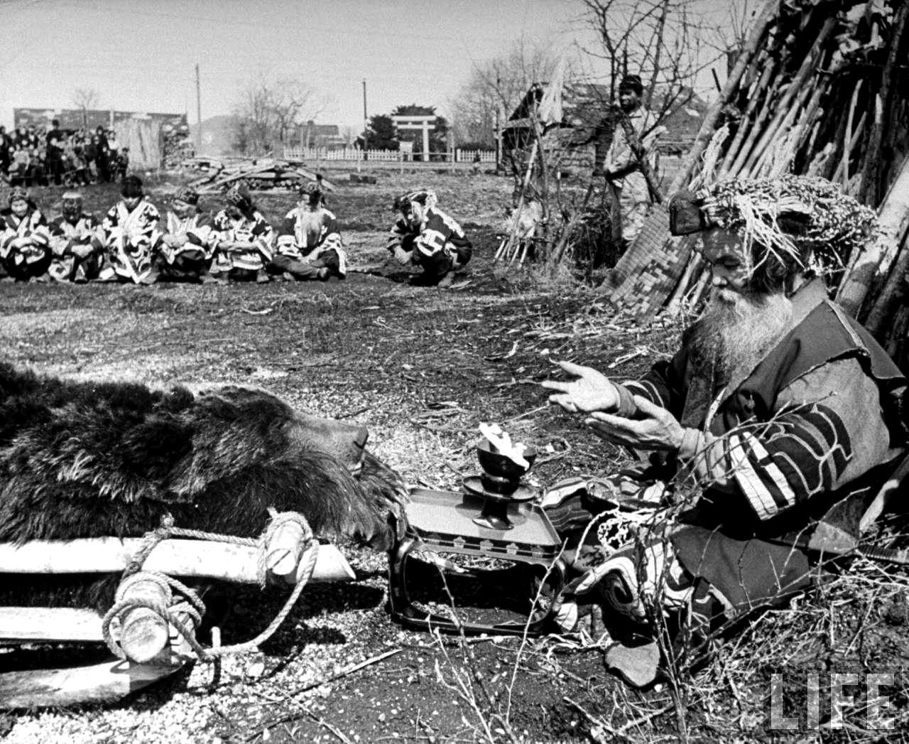 Ainu village chief worshipping