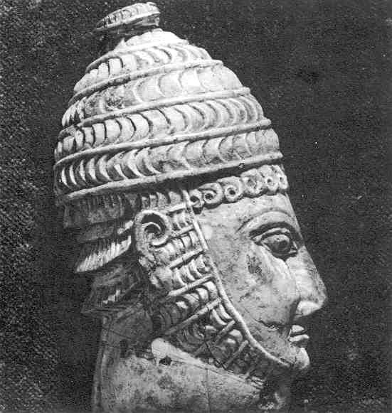 helmet. Ivory. From a chamber tomb at Mycenae, 1300s B.C.