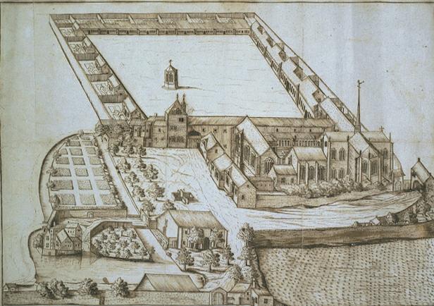 of Burgundy, and his wife, Margaret III of Flanders, kneel in the portal